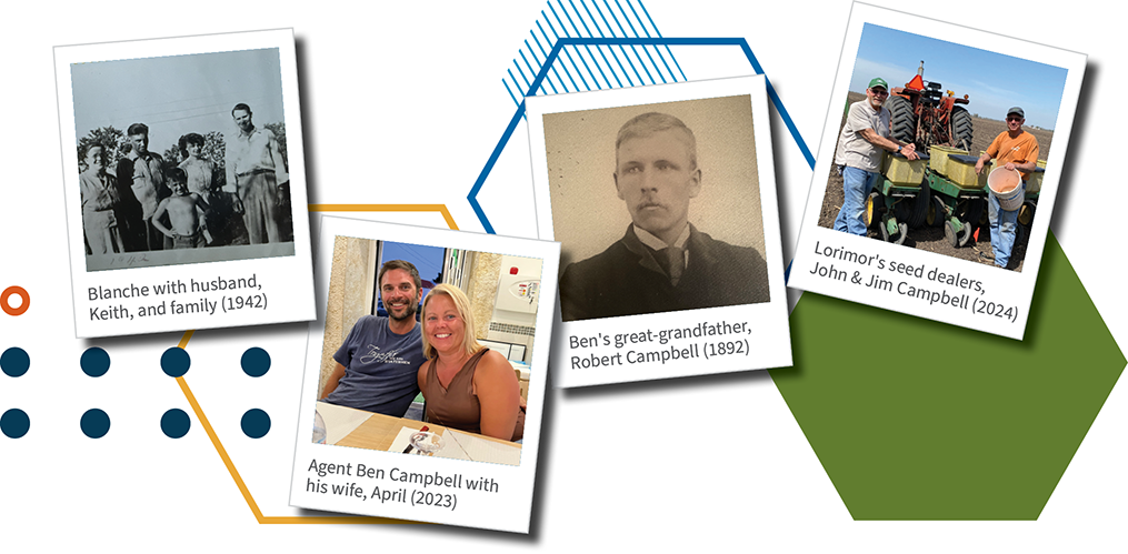 The Campbell family has worked with the Lorimor family for about forty years as their FMH crop insurance agents. Ben Campbell’s aunt, Judy Campbell, sold crop insurance to Lorimor’s father and cousin, and his uncle, John Campbell, has sold Pioneer corn and soybean seed to them since the late 1980s. When FMH agent Judy Campbell retired in 2011, Ben Campbell became a crop insurance agent, taking over Campbell Insurance Agency in Hedrick, Iowa, in 2013.